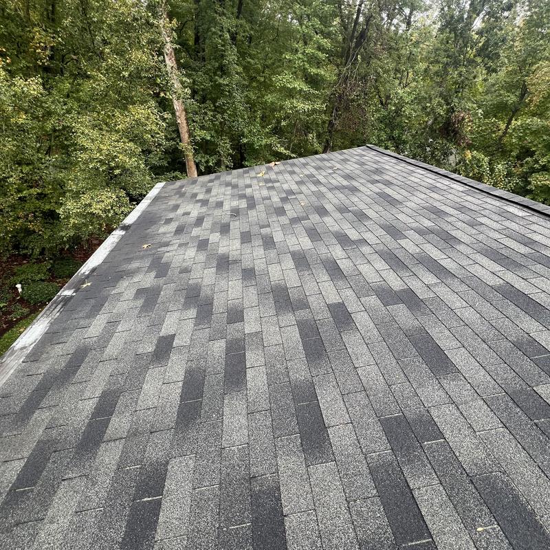 Madrids Contracting provided roof cleaning in Glen Burnie, Maryland, using the Roof Shampoo system. Technicians removed algae, dirt, and stains without harming the shingles. The process restored the original roof color and improved its surface condition.
